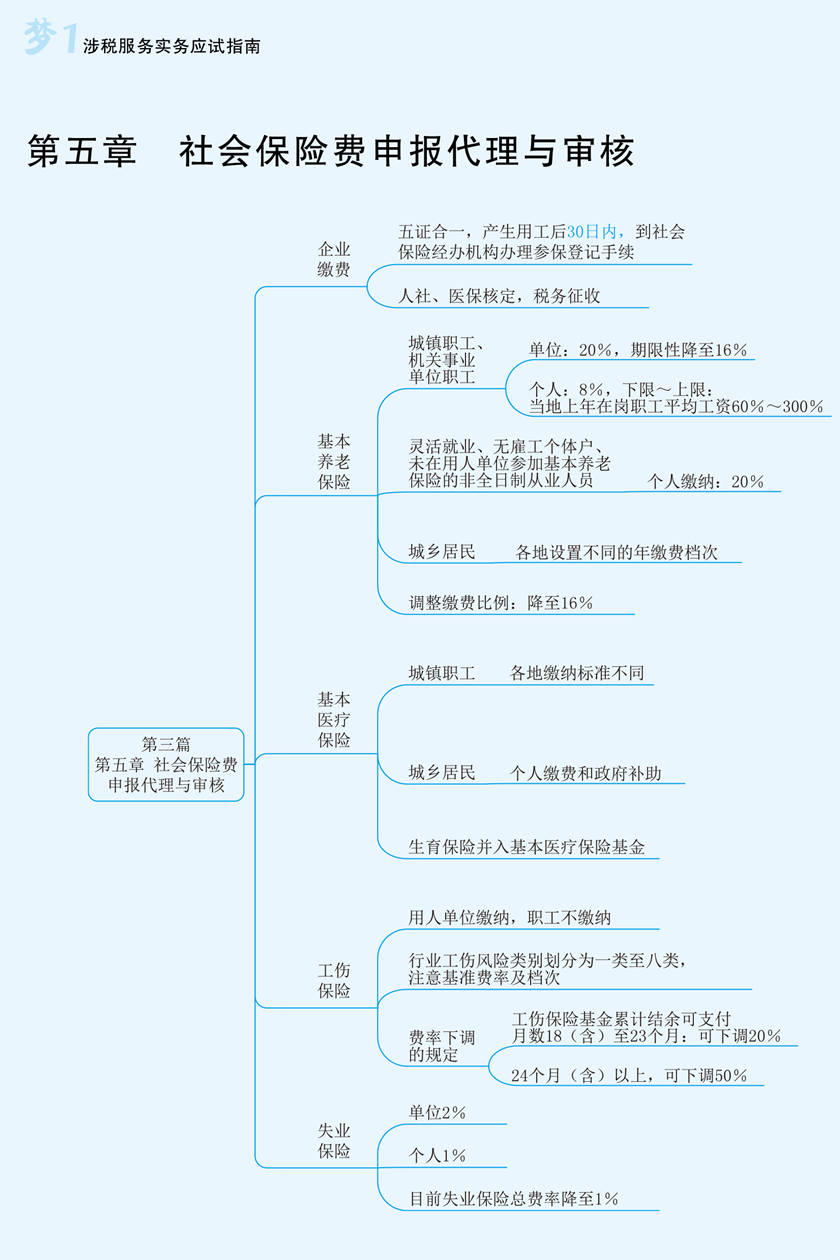 税务师涉税服务实务科目考查知识点比较灵活,既需要理解,又需要记忆,咱们平时学习,得好好打基础,把基础知识点记牢了,才能更好底面对综合类型的题目。那么,请收好网校老师给大家整理的2023年税务师涉税服务实务学习思维导图。以下是2023年税务师《涉税服务实务》学习思维导图第三篇第五章:社会保险费申报代理与审核。