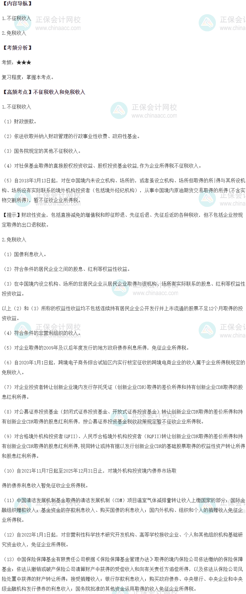 基础知识点大家学得差不多了吧?这时候是总结、复习的时间。2023年税务师 考试《税法二》科目各章节哪些知识点经常考呢?老师给大家总结了!下面先看看2023年税务师《税法二》第一章企业所得税高频考点:不征税收入和免税收入,好好复习哦!