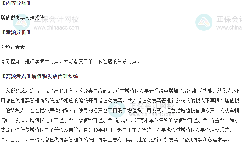 税务师考试高频考点务必熟记于心!因为在每年税务师考试中,一些高频考点经常会出题,在2023年税务师备考期间,网校老师又为大家整理好2023税务师考试各科目高频考点,下面更新2023年税务师考试《涉税服务实务》第二章税收征收管理高频考点:增值税发票管理系统,你掌握得如何?赶快好好看看!