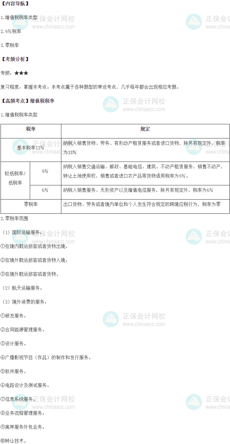 2023年税务师考试11月18、19日举行,备考时间越来越少,大家学习进度慢的话,得抓紧时间赶进度,后期还要反复学习重点知识点,尤其是高频考点,希望大家务必掌握熟练。下面更新2023年税务师考试《税法一》第二章增值税高频考点:增值税税率。