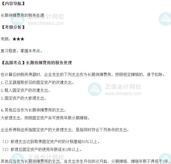 税务师《税法二》难度适中,但需要记忆的知识点多,考试题量往往偏大,希望平时备考时,大家多花点时间,且要有重点地学习,近年来税务师考试经常考到的知识点一定要熟练掌握。下面更新的是2023年税务师考试《税法二》第一章企业所得税高频考点:长期待摊费用的税务处理,赶快看看!
