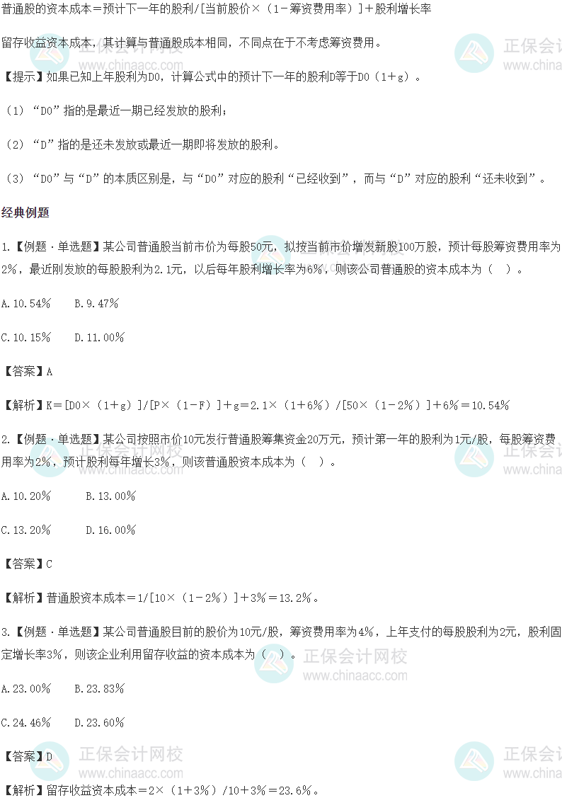 知识点2:普通股的资本成本VS留存收益资本成本