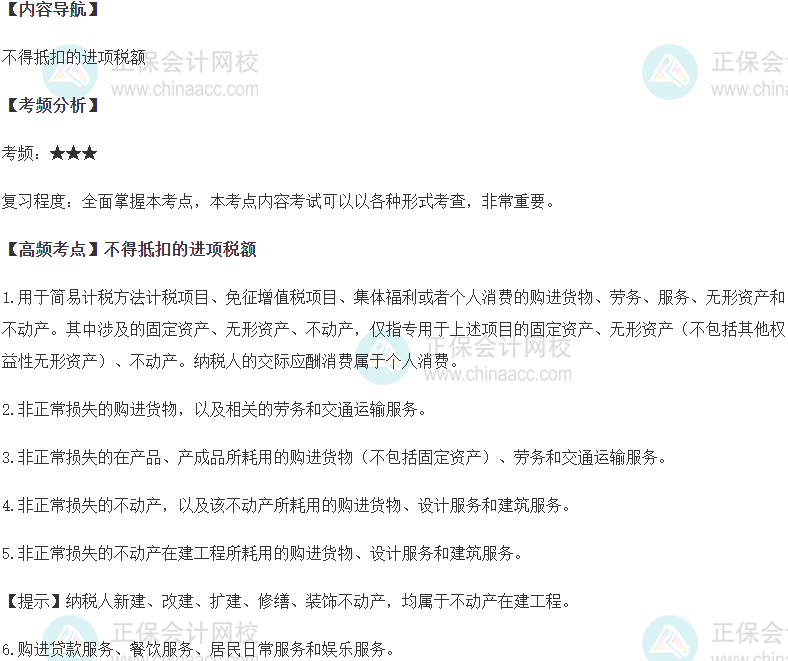 2023年税务师考试时间为11月18、19日,随着考试临近,考生要更有针对性地复习,尤其要注意历年税务师考试的高频考点,务必掌握好,下面更新2023税务师《税法一》第二章增值税高频考点:不得抵扣的进项税额,你会了吗?快复习一下吧。