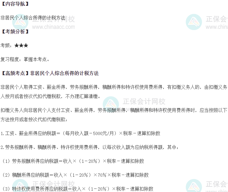 相信很多人已经将税务师基础知识点学了一遍了,掌握得如何?一定要多做题、总结哦,重点知识要掌握好!下面继续更新2023税务师《税法二》第二章个人所得税高频考点:非居民个人综合所得的计税方法,赶紧复习起来!