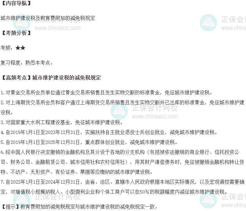 税务师税法一历年考试高频考点,你都掌握了吗?下面是2023年税务师《税法一》第四章高频考点:城市维护建设税及教育费附加的减免税规定,你会了吗?赶紧复习复习!