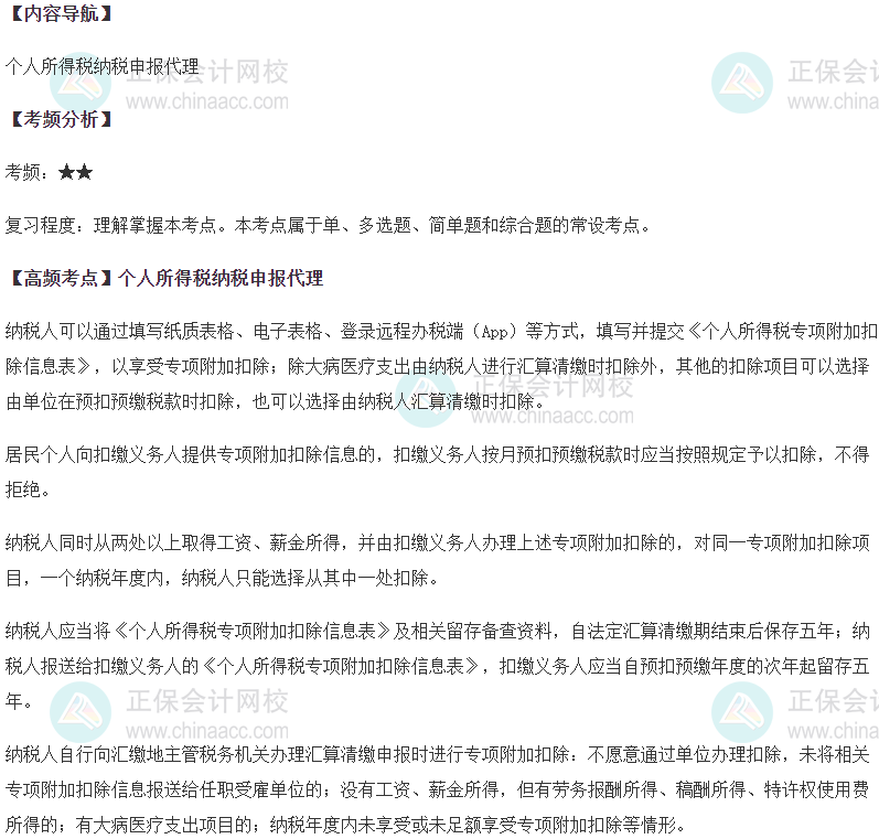 2023年税务师考生,请大家复习的时候注意高频考点的掌握。以下为2023税务师《涉税服务实务》第五章高频考点:个人所得税纳税申报代理,赶紧复习起来!