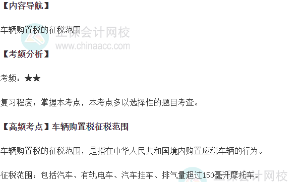 税务师税法一知识点相对好理解,但是需要记忆的知识点多,一定要全面学习,不能遗漏哦!尤其是近年来经常考察的知识点,要多多复习巩固。以下是2023年税务师《税法一》第七章高频考点:车辆购置税征税范围,赶快复习起来!