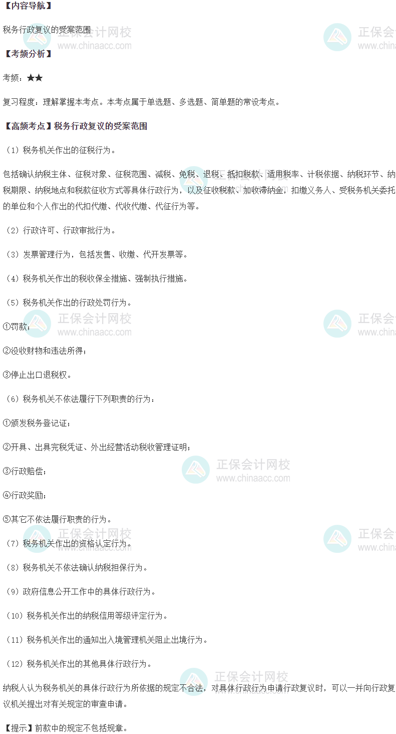 2023年税务师备考正在进行中,大家学得如何?以下为2023税务师《涉税服务实务》第九章高频考点:税务行政复议的受案范围,你掌握了吗?快看看,查漏补缺。