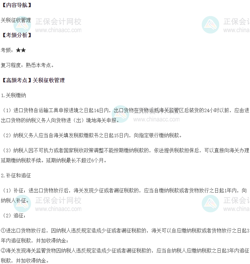 正保会计网校老师整理了2023年税务师考试《税法一》高频考点,下面是2023税务师《税法一》第十章高频考点:关税征收管理,速看!