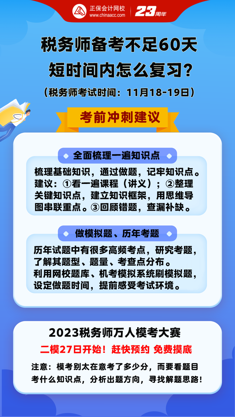 距离2023年税务师考试越来越近,如何短时间内冲刺备考呢?最后两个月时间,建议抓重点、巩固薄弱知识点。