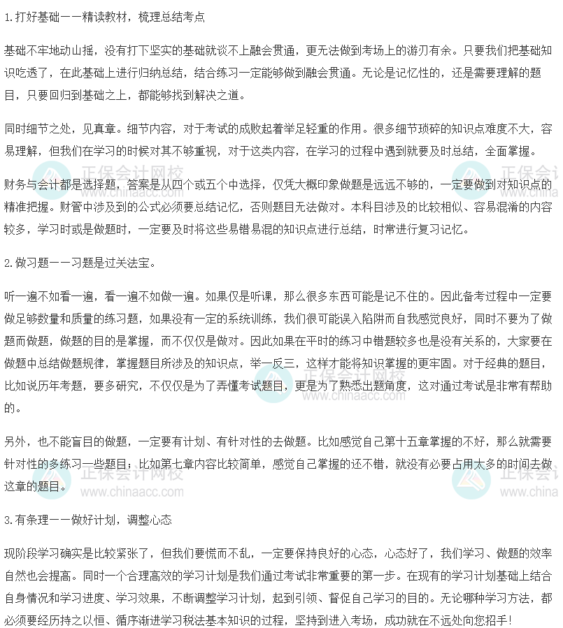 税务师《财务与会计》考前冲刺学习方法