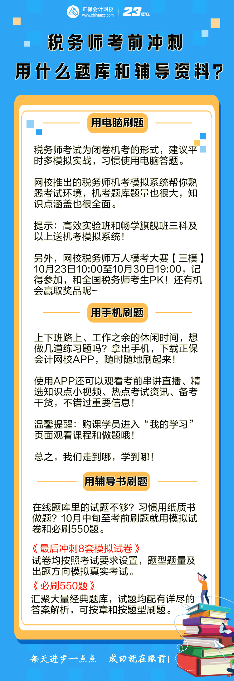 做任何事情,不怕慢,就怕站,备考税务师也一样。10月中旬至考前这段时间,大家要设定复习目标,多做题,通过做题来巩固知识点。