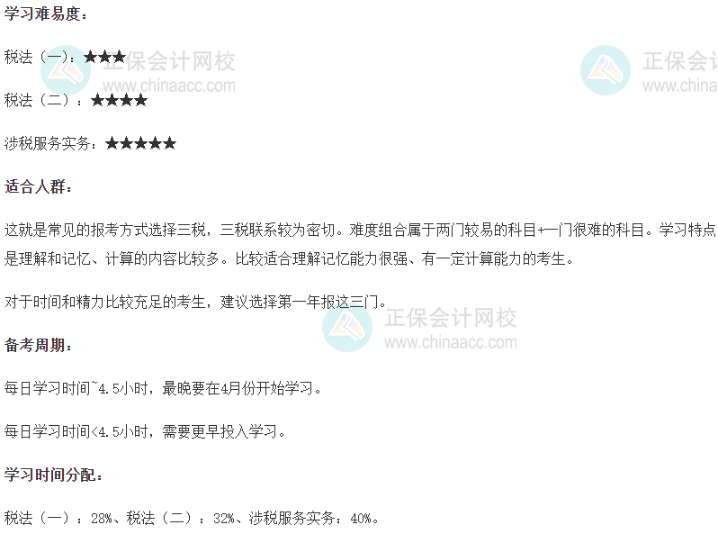 第一年报考《税法一》、《税法二》、《涉税服务实务》;