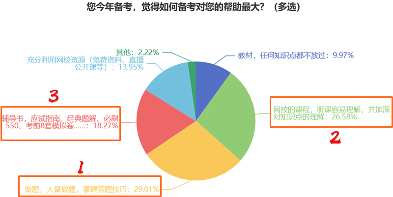 参加税务师考试大部分同学认为,做题、网课、辅导书对自己的帮助最大。