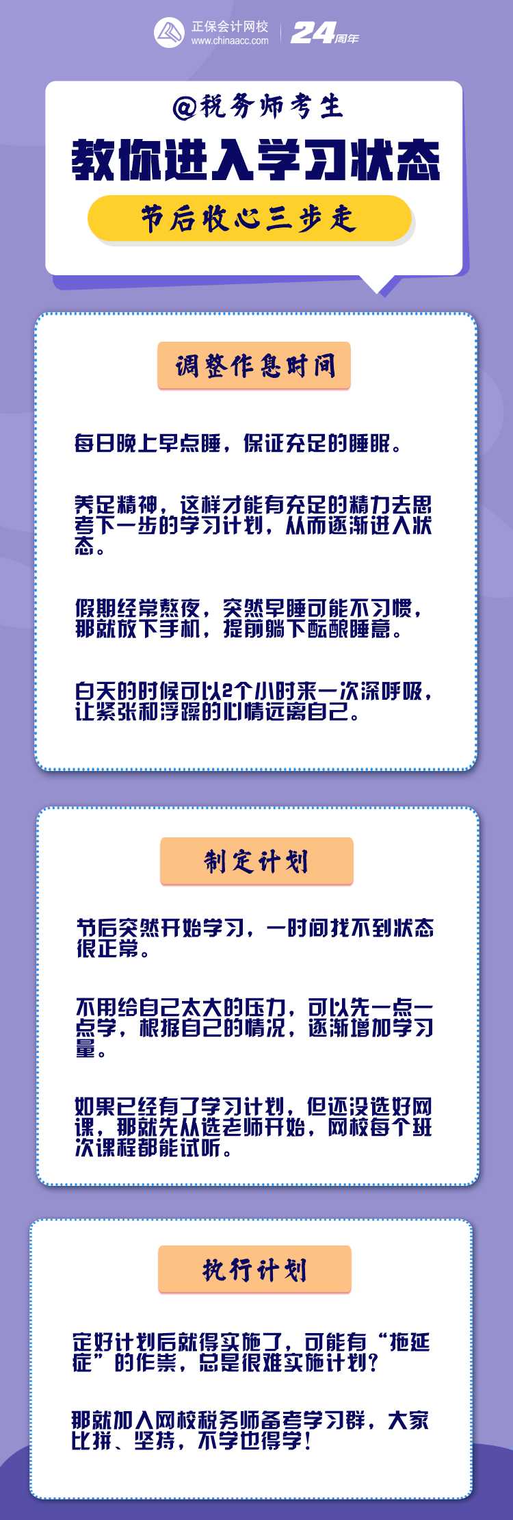 不想上班?不想学习?一想到学习就失眠?“假期后综合征”很普遍。但税务师考生得收收心,毕竟要考证,休闲娱乐之后,得逐渐进入学习状态啦。