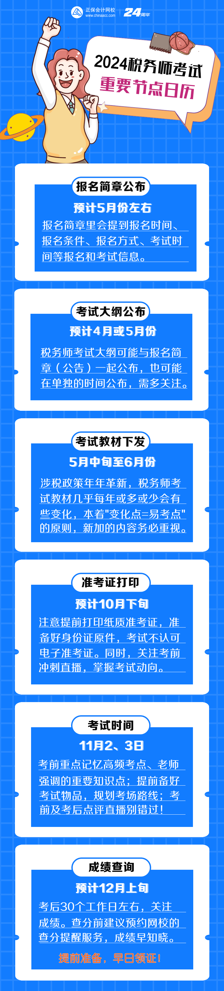 当然,想知道全年更详细的节点提示,可以细看这篇文章→2024年税务师考试全年重大时间节点。