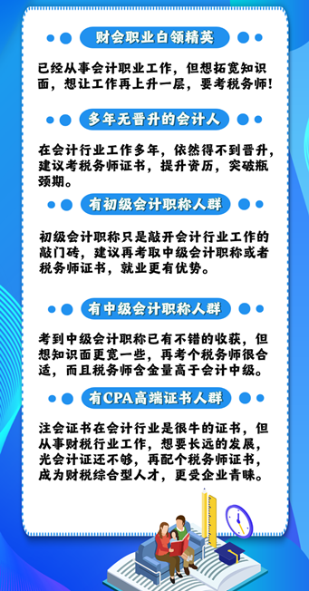 如果你有提升自己的想法,就尽快行动,考个税务师,挑战一下自己,哪怕第一年先通过一些科目,2-3年内拿到税务师证书也是不错的。网校老师可以指导大家高效备考,争取早日实现梦想!