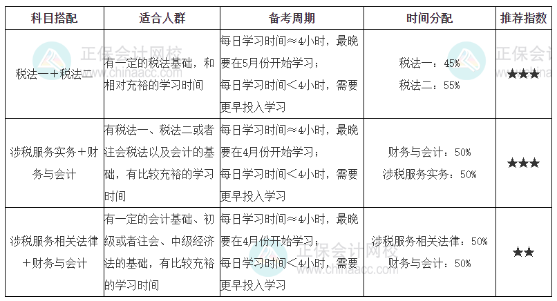报考三科搭配建议如下: