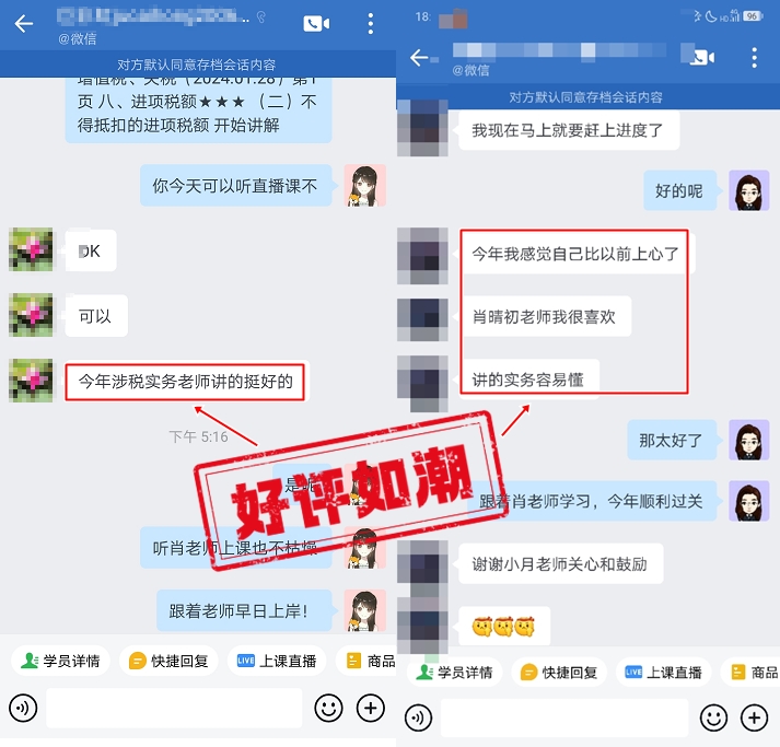 在税务师考试五科里,财务与会计和涉税服务实务两科综合性越来越强,还都注重理解,让很多人犯愁,但VIP签约特训班的小伙伴却表示:今年听了实务肖晴初、财会靳焕一老师的课,知识点容易听懂,感觉学习比以前更上心了!