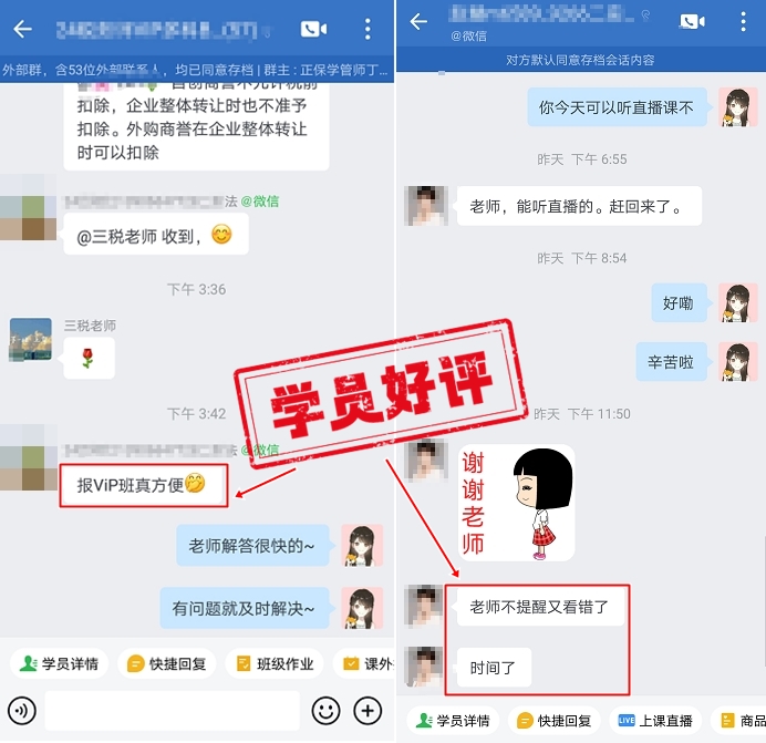 税务师备考的过程很枯燥,你需要放弃你喜欢的娱乐活动,忙完工作你还要学习......但当你取得证书时,你会觉得付出的一切都值得!如何度过枯燥又“痛苦”的备考过程呢?掌握知识离不开讲师的指点迷津,而备考过程中,老师的陪伴和鼓励,也给了学员很多帮助!
