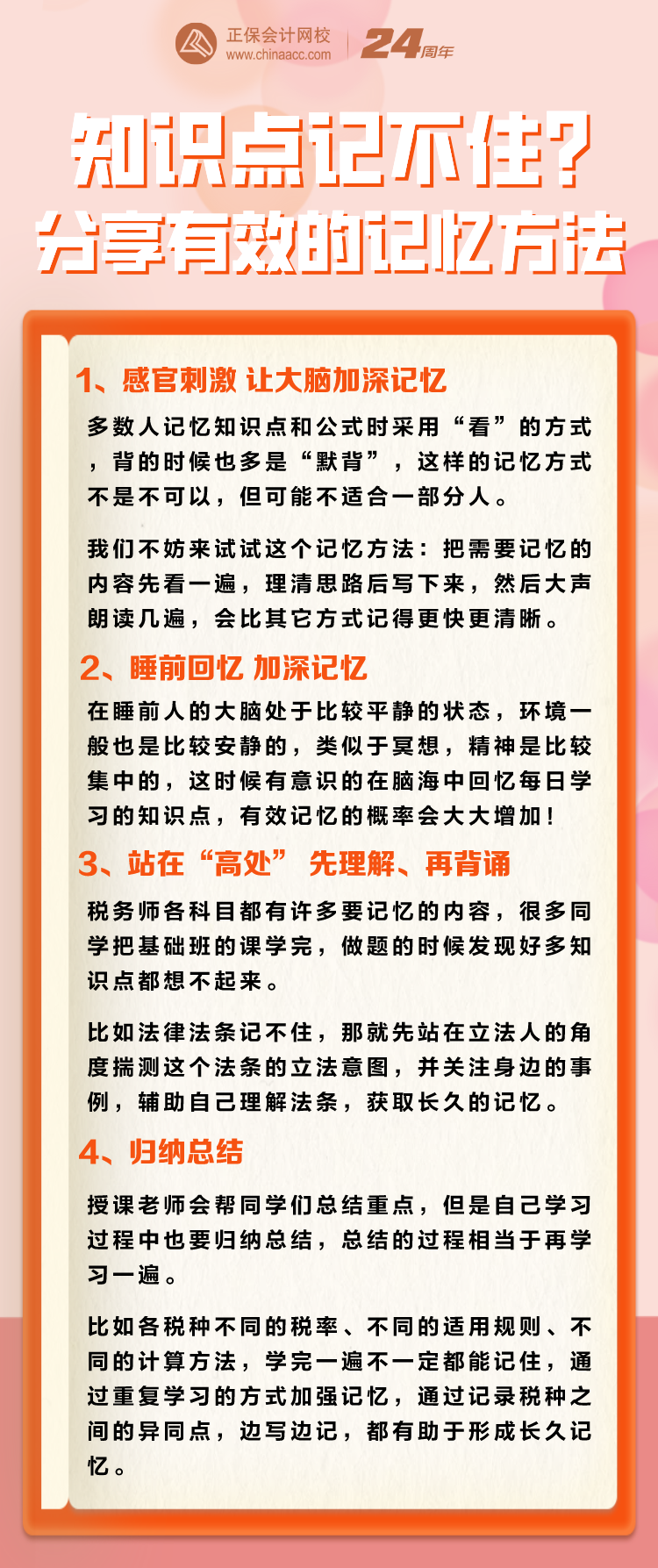 税务师考试五科知识点很多,刚开始学可能觉得还可以,但越往后深入学习,可能会觉得要记的知识点越来越多,学过的知识第二天就忘,有些力不从心。
