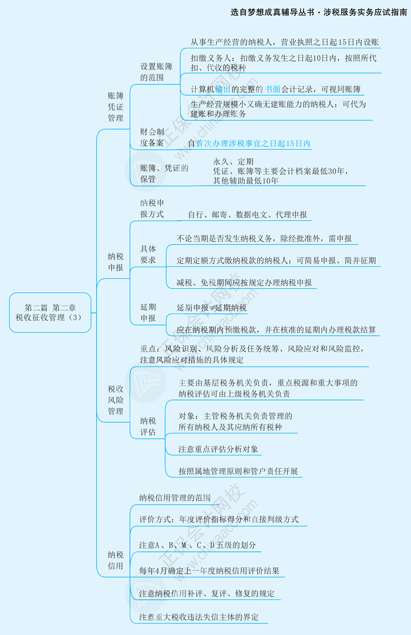 正保会计网校整理了2024年税务师《涉税服务实务》各章节思维导图,下面是2024年税务师《涉税服务实务》第二篇第二章思维导图:税收征收管理(3),赶快看看吧。