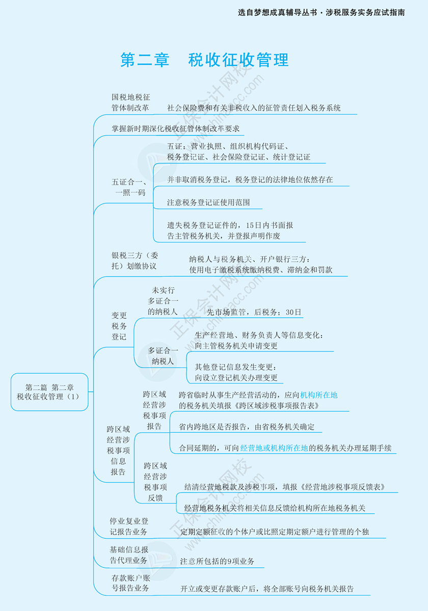 想要更高效地理解和记忆税务师知识点,建议同学们使用思维导图。正保会计网校整理了2024年税务师《涉税服务实务》各章节思维导图,下面是2024年税务师《涉税服务实务》第二篇第二章思维导图:税收征收管理(1),快看看!