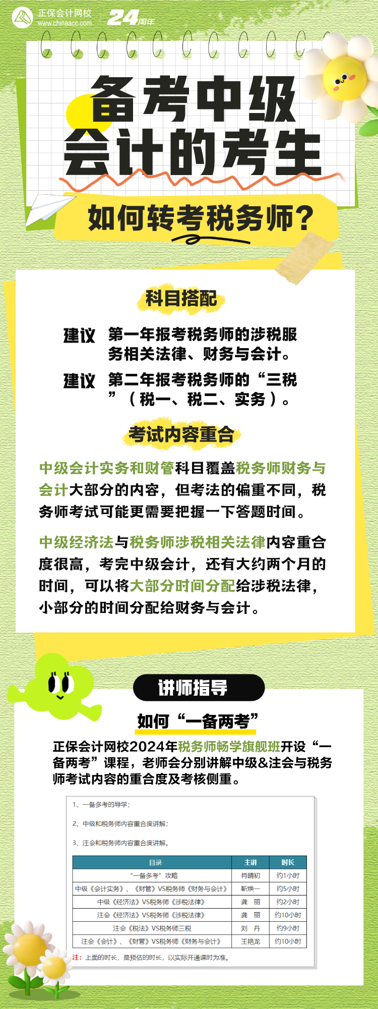 再次提醒,网校2024税务师畅学旗舰班开设的“一备两考”课程会专门针对中级、注会考生转考税务师进行指导,都是干货,建议去学一学!