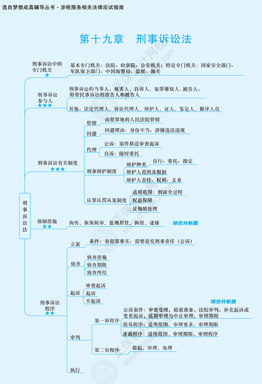 《涉税服务相关法律》第十九章思维导图:刑事诉讼法