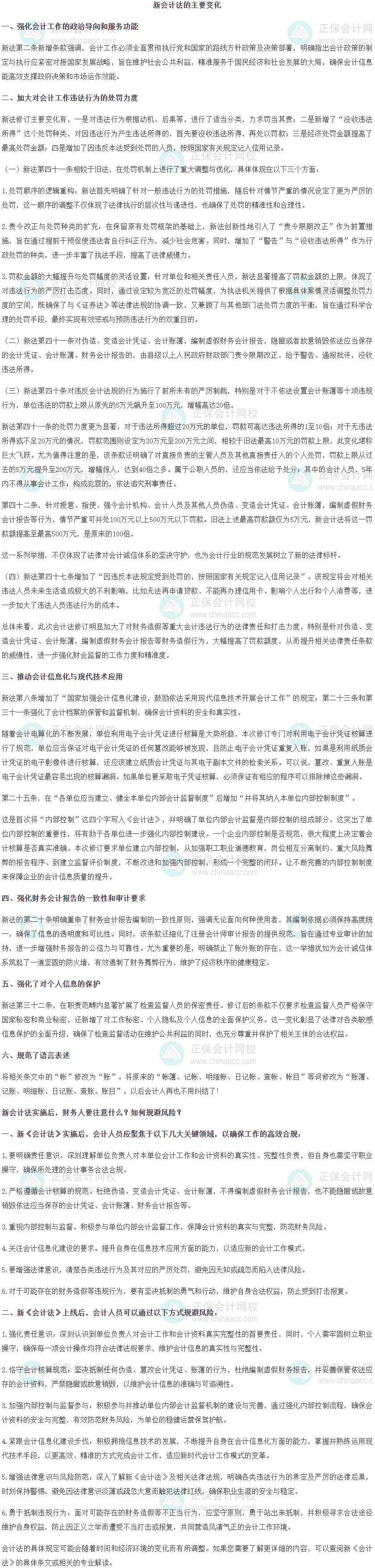 关于新《会计法》,网络上流传着一种声音,称此次会计法的“重磅”修订让会计职业看似“压力山大”,甚至有“高危”之虞,部分会计人员担忧自己可能不慎成为“责任背锅者”,因此考虑离职以规避潜在风险。网校老师深入剖析新《会计法》的核心变动,并探讨这些变化如何具体影响会计从业人员的工作环境与职业选择。