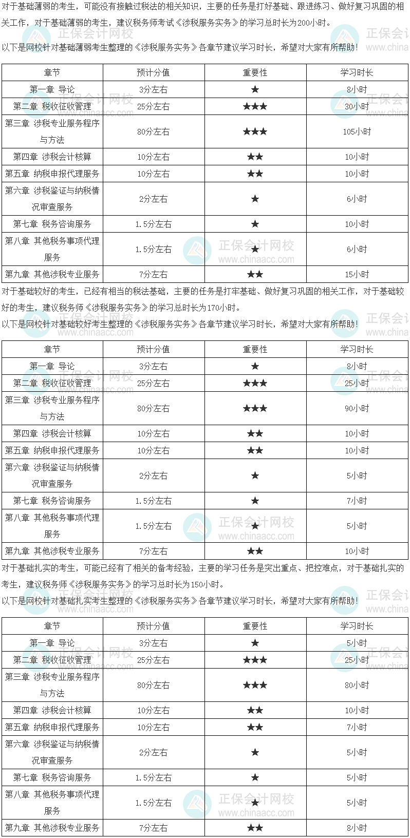 税务师《涉税服务实务》综合性强,知识点考察方式比较灵活,平时要多下点功夫!网校老师整理的2024年税务师《涉税服务实务》各章节建议学习时长及重要性分析,或许是你需要的。