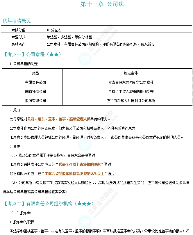 每年税务师考试总有一些内容频繁被考察到,希望大家有重点地复习。下面是2024年税务师《涉税服务相关法律》第十三章高频考点,关于公司法的内容,看看掌握得怎么样了!
