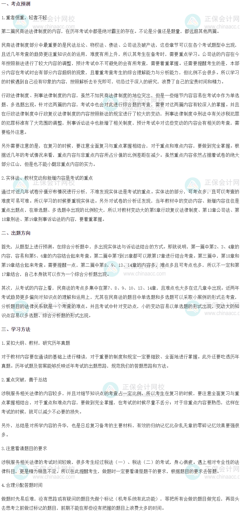 《涉税服务相关法律》考点预测、出题方向与学习方法