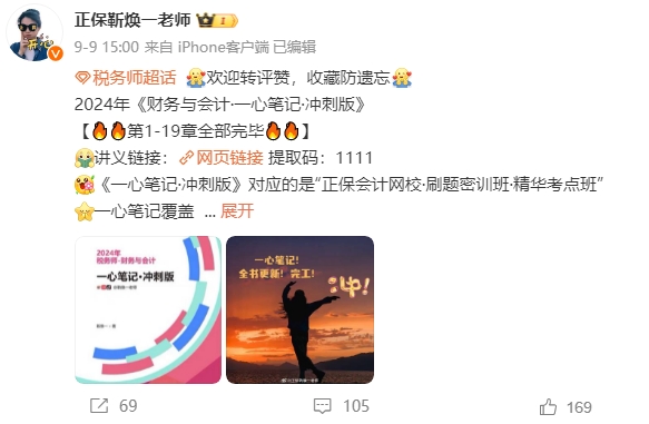 1、前往老师微博(微博搜索正保靳焕一老师),搜索“一心笔记”等关键词,找到相应微博,进入老师提供的链接去下载。