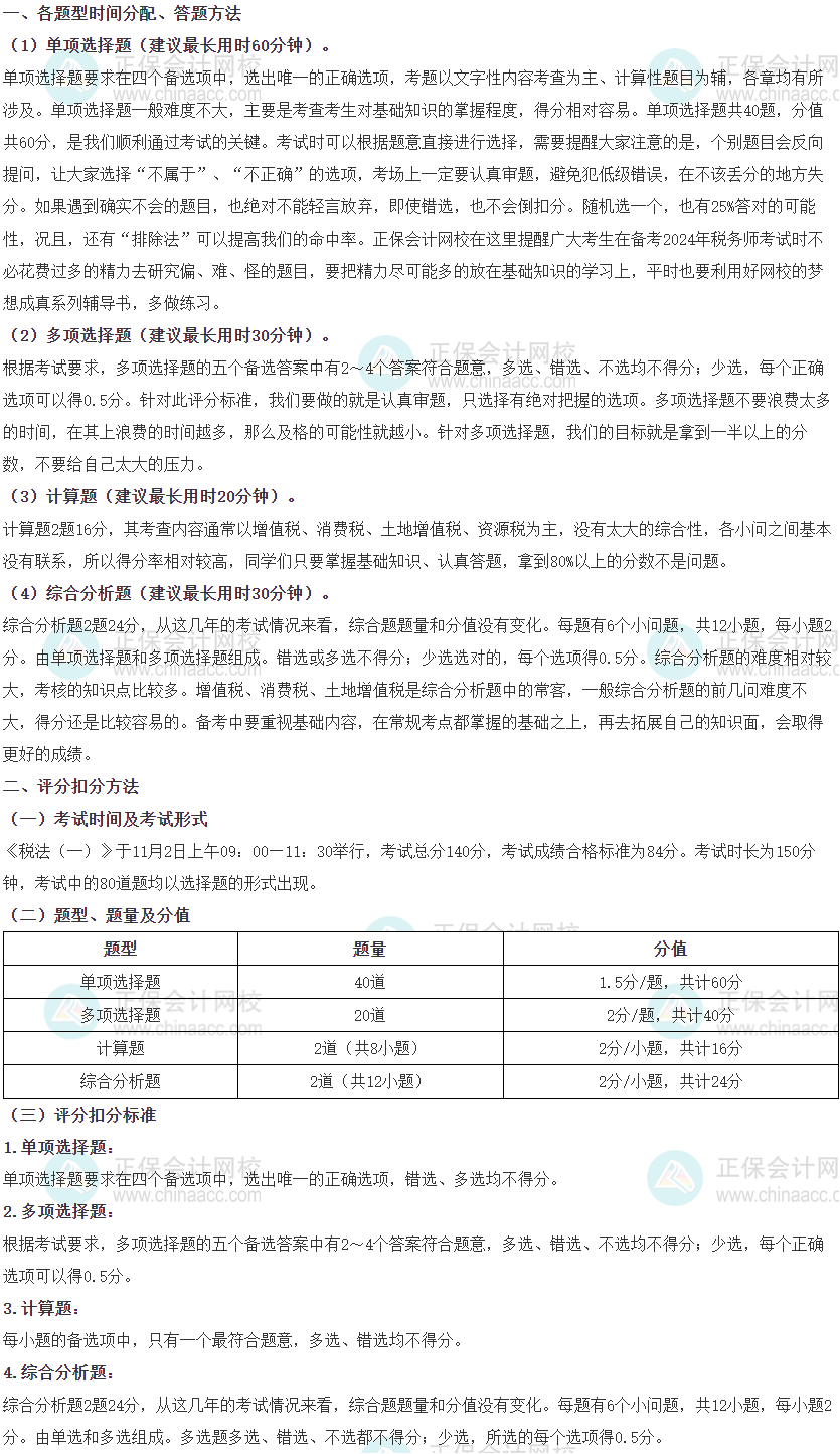 《税法一》各题型时间分配、答题方法