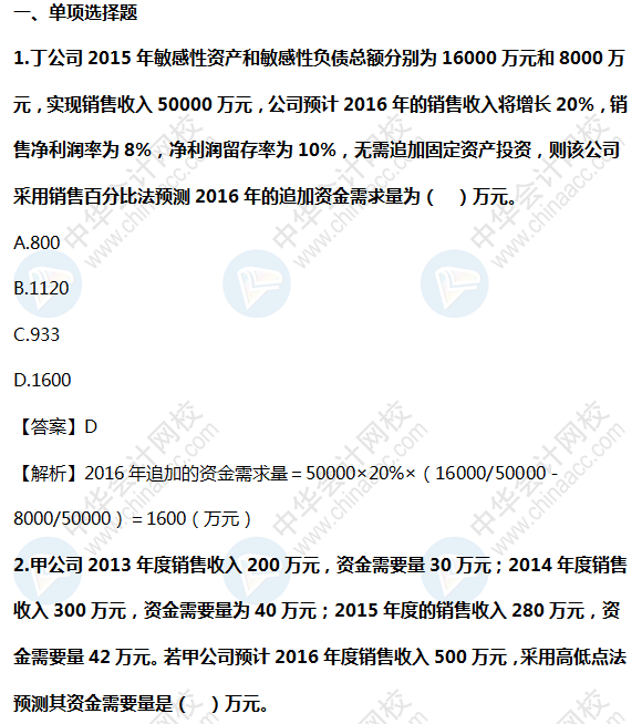 2019税务师《财务与会计》精选习题:第三章 财务预测和财务预算
