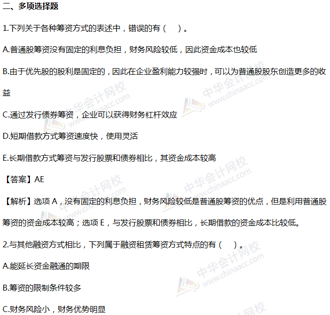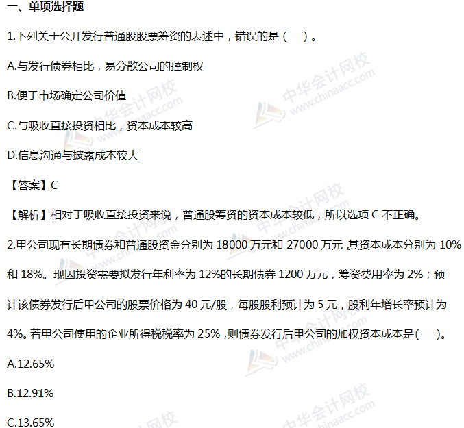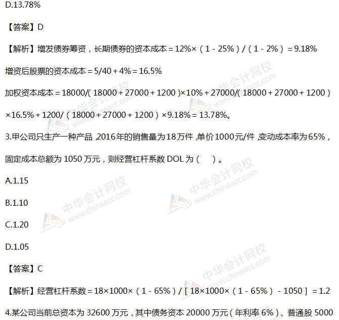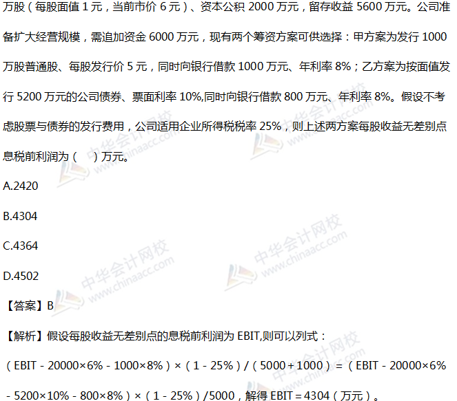 2019税务师《财务与会计》精选习题:第四章 筹资与股利分配管理