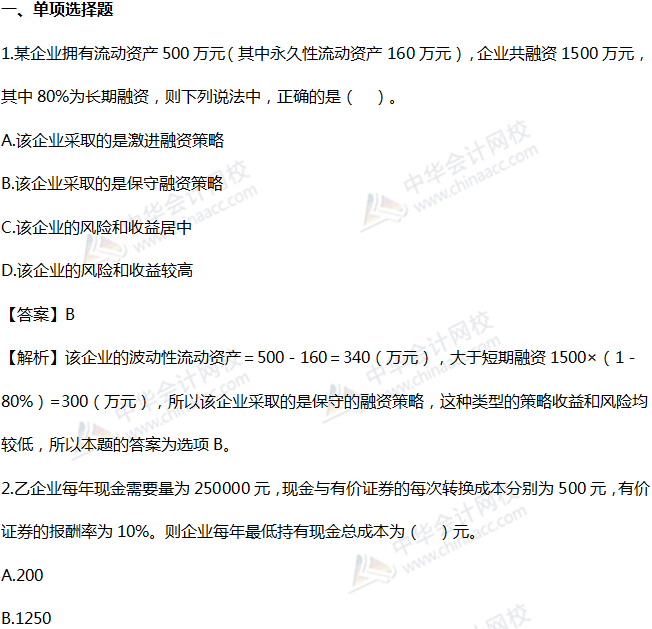 2019税务师《财务与会计》精选习题:第六章 营运资金管理