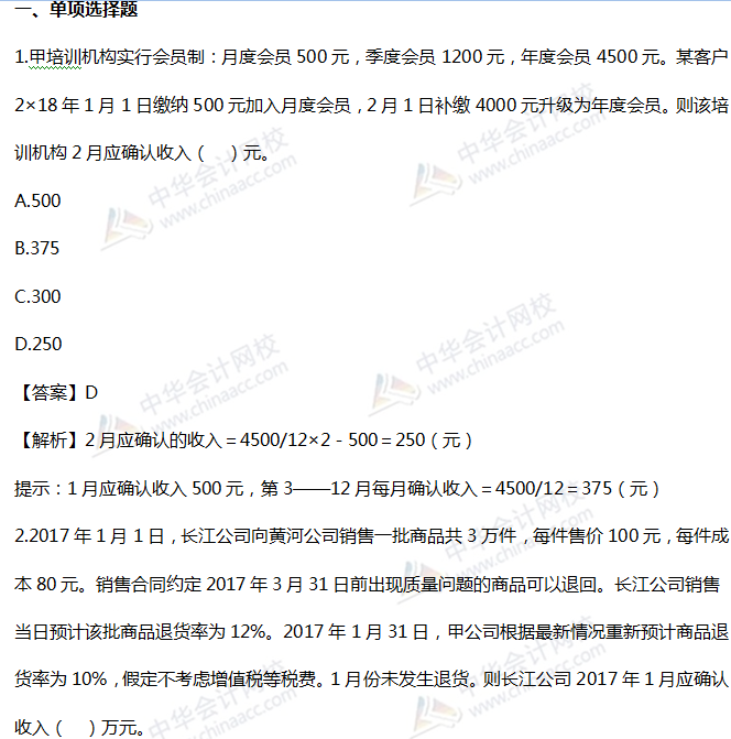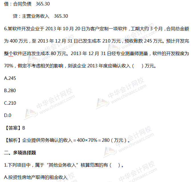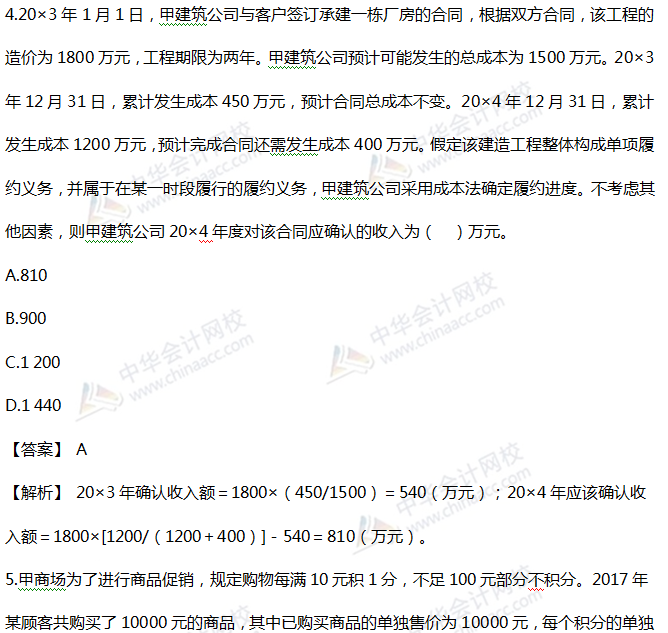 2019税务师《财务与会计》精选习题:第十六章 收入、费用与利润