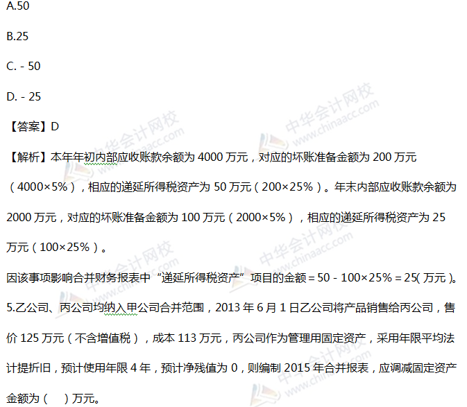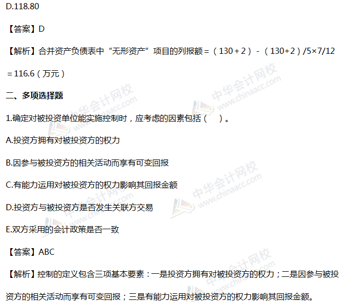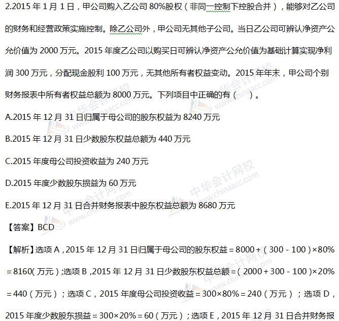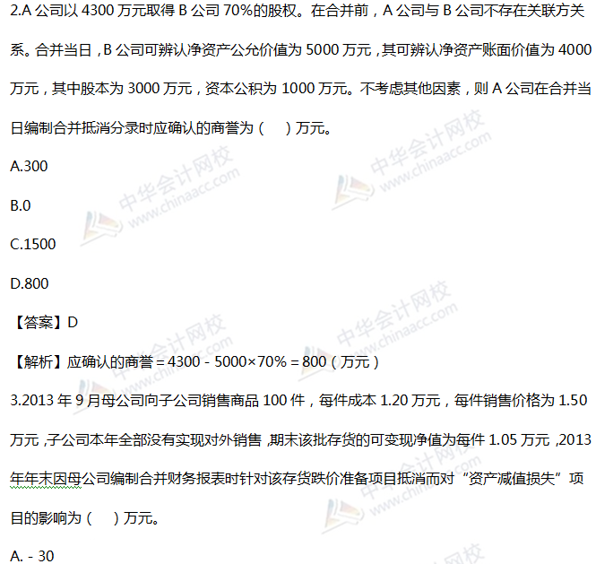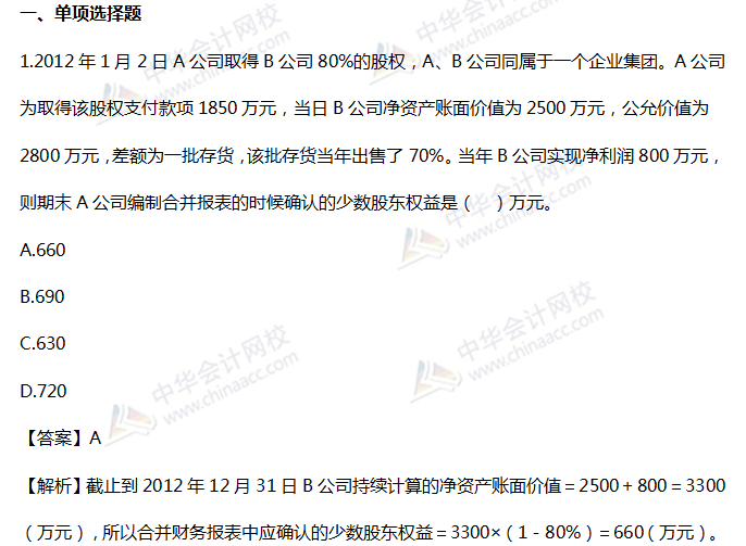 2019税务师《财务与会计》精选习题:第二十章 合并财务报表
