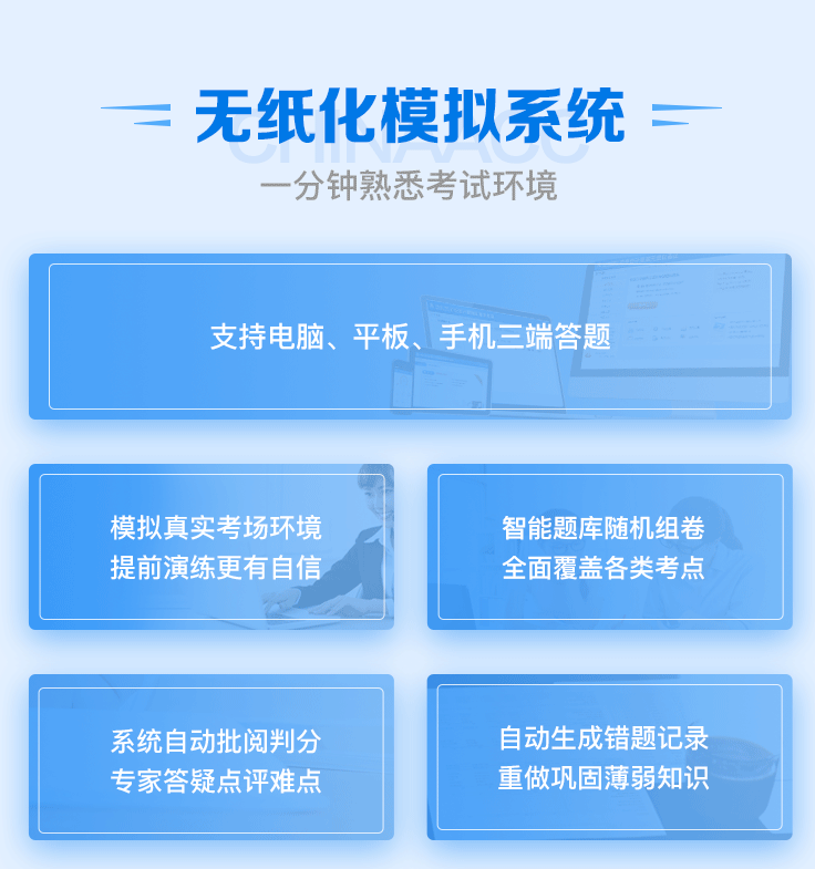 正保会计网校机考模拟系统带你一分钟熟悉真实的考场环境,让你提前演练更有自信!支持电脑、平板和手机三端答题,智能题库随机组卷,全面覆盖各类考点;专家答疑攻克难点考点,自动生成错题记录......赶快来体验吧!>>>机考免费体验系统 (建议通过电脑端体验)