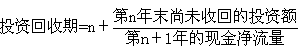 | 计算方法 | ①若各年现金净流量相等: 投资回收期(年)=投资总额÷年现金净流量 ②若各年现金净流量不相等: ![]() |