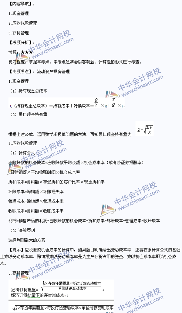 我们一起来学习2014注册税务师考试《财务与会计》高频考点:流动资产投资管理。本考点属于《财务与会计》第五章投资管理第二节流动资产投资管理的内容。