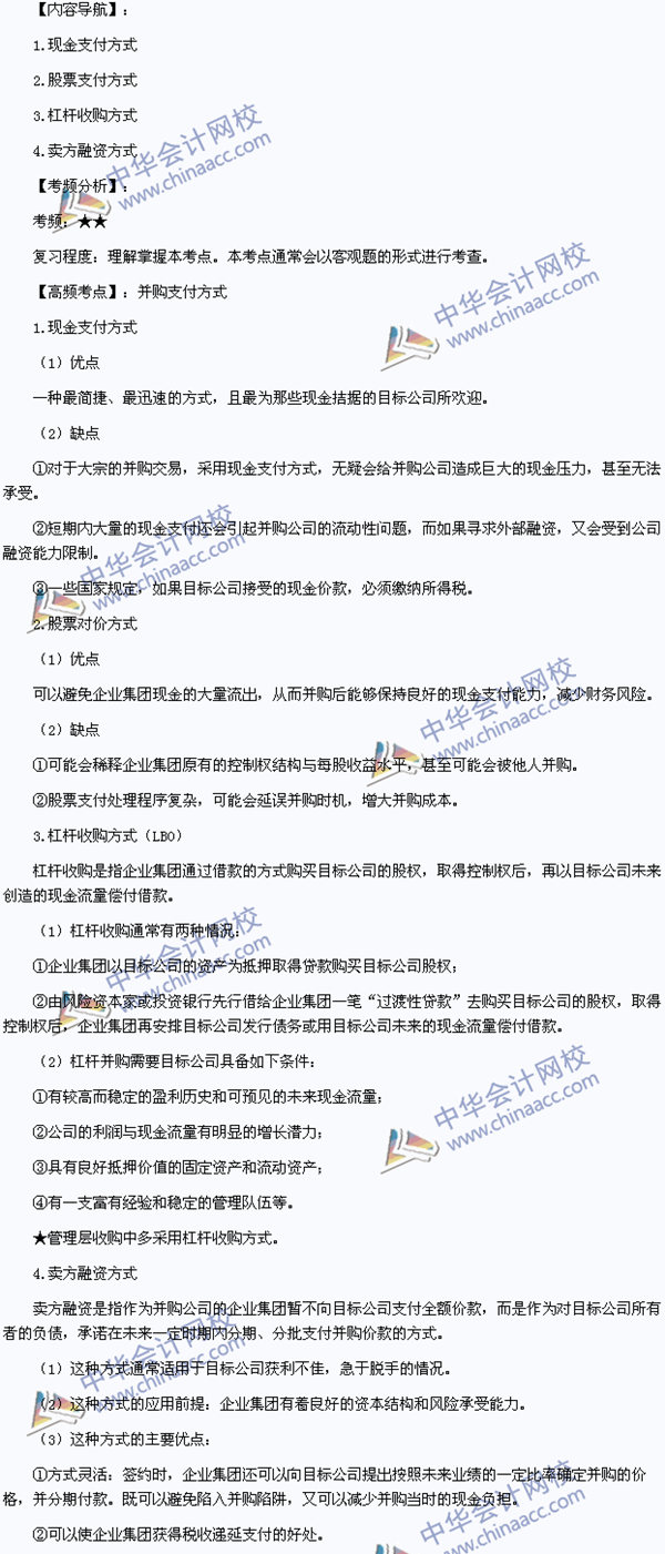 我们一起来学习2014年注册税务师考试《财务与会计》高频考点:并购支付方式。本考点属于《财务与会计》第六章资本运营第一节公司并购的内容。