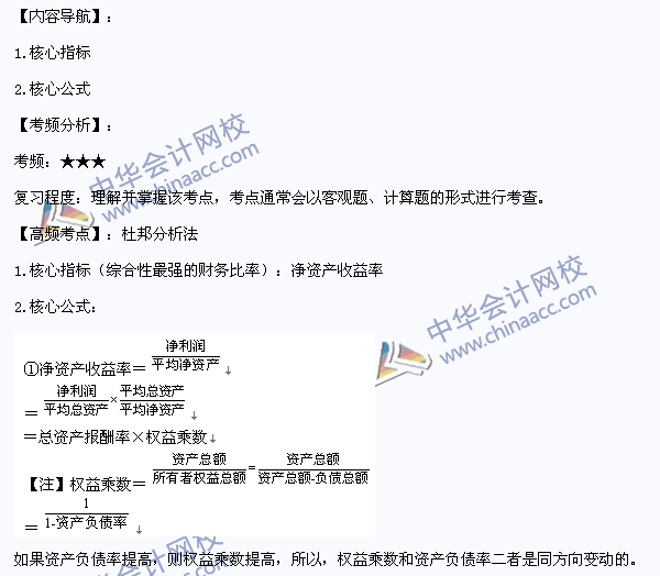 我们一起来学习2014《财务与会计》高频考点:杜邦分析法。本考点属于《财务与会计》第七章财务分析与评价第三节综合分析与评价的内容。