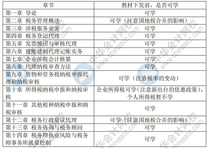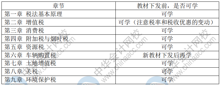 而《个人所得税》发生了巨变,考生们切勿再看18年教材整体学习,可以先看看新的法律条文,等新教材下发后结合网校课程仔细学习。《耕地占用税》 《印花税》这两个小税种变化比较大,建议可以先放一放。内容相对也比较少,等新教材下发再认真准备完全来得及。