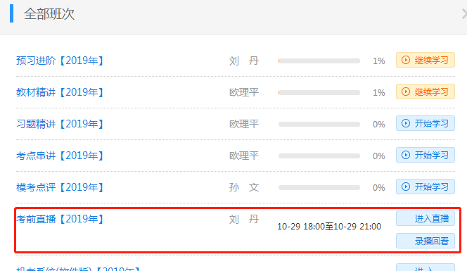 大家可以在“我的家”对应班次下观看相应直播,直播安排如下: