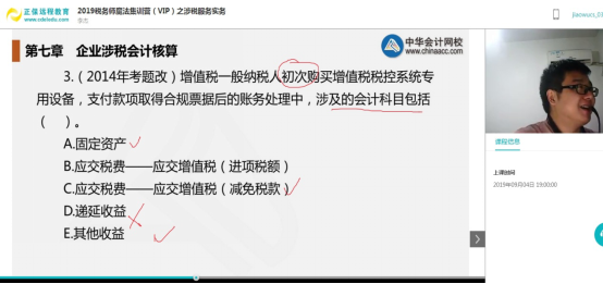 2019《涉税服务实务》试题单选题与网校课程中的相似考点