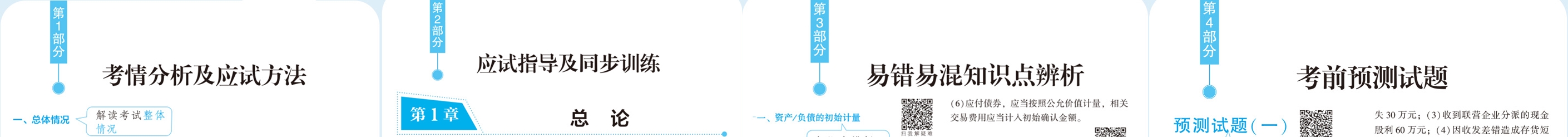 第一部分:考情分析及应试方法;第二部分:应试指导及同步训练;第三部分:易错易混知识点辨析;第四部分:考前预测试题。