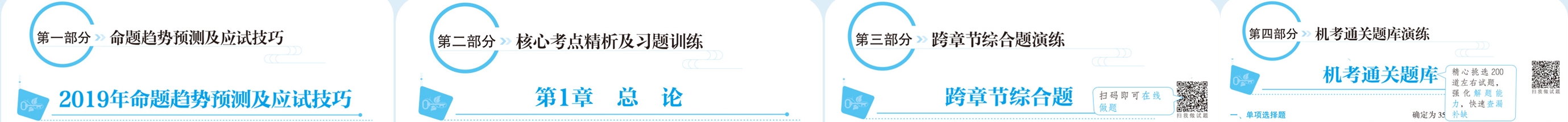 第一部分:命题趋势预测及应试技巧;第二部分:核心考点解析及习题训练;第三部分:跨章节综合题演练:第四部分机考直达题库演练。